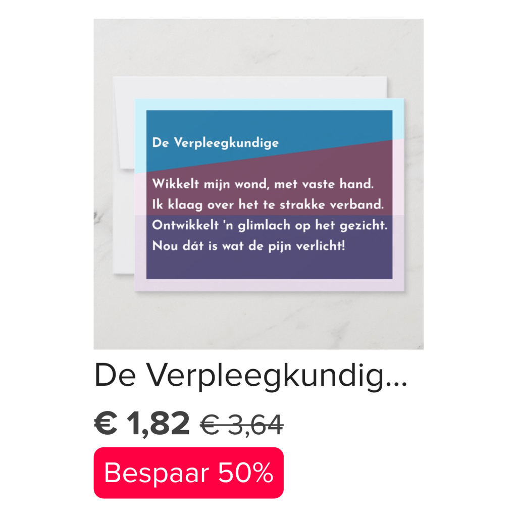 Ga naar de Zazzle Winkel en gebruik de zoekfunctie op de Bekroonde Kaarten winkelpagina. Typ bijvoorbeeld ‘Verpleegkundige’, ‘Vrijwilliger’ of ‘Zorgmanager’ om de gewenste kaart te vinden.