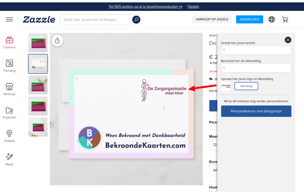 Naast de eerder beschreven aanpassingen is er nog een element waar vooral organisaties profijt van kunnen hebben: het toevoegen van jouw eigen logo aan de bedankkaart. Hiermee kun je als organisatie laten zien dat je dankbaar bent voor de inzet van jouw zorgdragers. Hieronder staat beschreven hoe deze aanpassing kan worden toegepast: